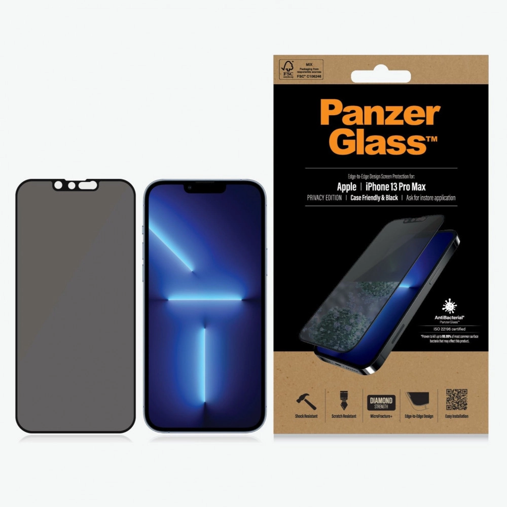 واقي شاشة PanzerGlass ™ لجهاز iPhone 13 /13 PRO باللون الأسود مع خصوصية يتميز بنفس المزايا الأساسية مثل الزجاج الأصلي ، مع حماية محتوى الشاشة أيضًا. يجعل مرشح السرية محتوى الشاشة غير مرئي تقريبًا للجميع باستثناء مستخدم الجهاز. في الوقت نفسه ، يقلل من التعرض للضوء الأزرق ويتميز بطبقة مقاومة للوهج ، مما يقلل من انعكاسات الضوء التي تصل إلى عينيك دون التأثير على رؤية الشاشة.