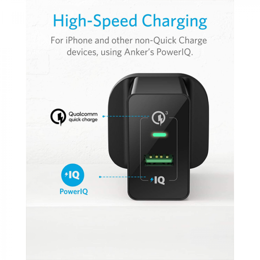 شاحن جداري انكر باوربورت بلس1 بمنفذ USB يدعم الشحن السريع 3.0 بقوة 18 واط - اسود